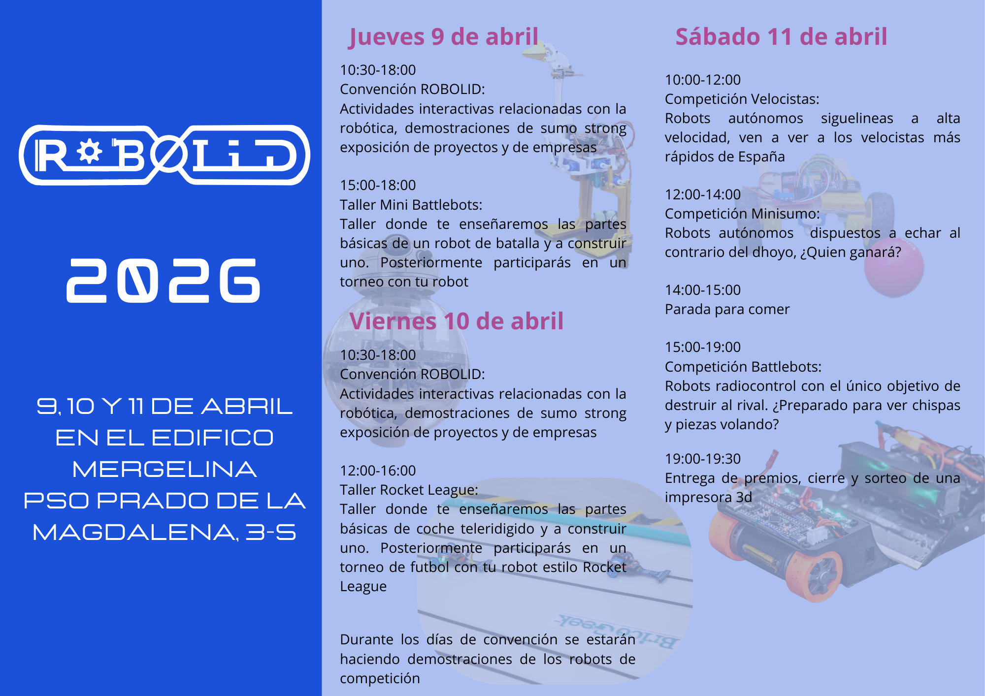 Esta semana, del 9 al 11 de abril, tendrá lugar en la Escuela de Ingenierías Industriales la Feria de Robótica y Tecnología ROBOLID 2026 que organiza la asociación AMUVA